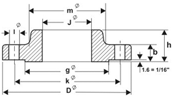 | Nominal Pipe size | Flange | Hub m mm. Inches | Raised Face g mm. Inches | Drilling Template | Approx. weight Kg. Pounds | |||||